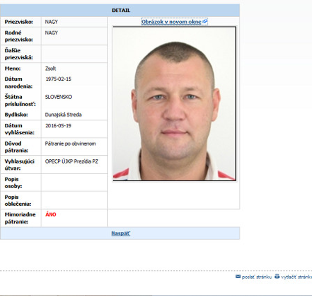 Na webovej stránke polície v sekcii hľadané osoby sa počas víkendu po zadaní mena Zsolt Nagy objavila informácia: "Podmienke vyhovuje 0 záznamov". V pondelok sa situácia zmenila a polícia zverejnila, že po ňom vyhlásili mimoriadne pátranie. Vyhľadať sa to dá tu.