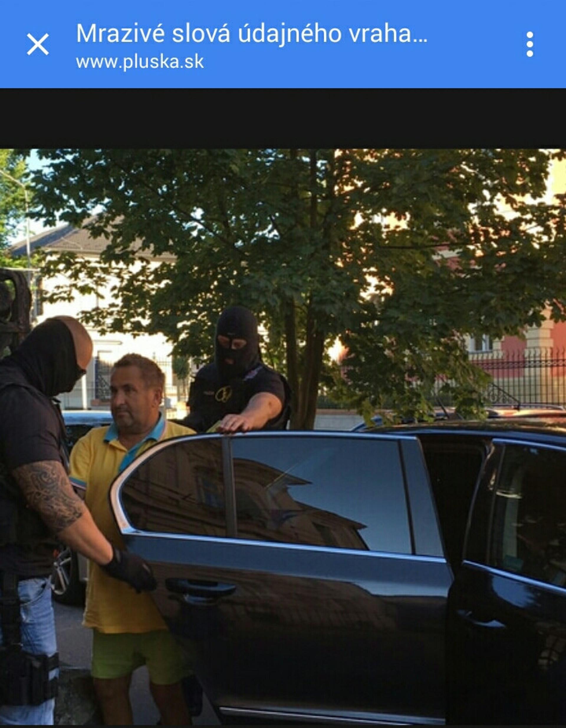 Do budovy súdu v Banskej Bystrici, kde sa konalo neverejné zasadnutie, dvojicu predvádzali operatívci z protizločineckej jednotky, ktorá prípad vyšetruje. Na hlavách mali kukly. Jeden z operatívcov má však na ramene výrazné tetovanie. Je tak ľahké si ho zapamätať a neskôr spoznať. Na zábere ho zachytila redaktorka z denníka Plus JEDEN DEŇ. Viac fotiek si môžete pozrieť tu.