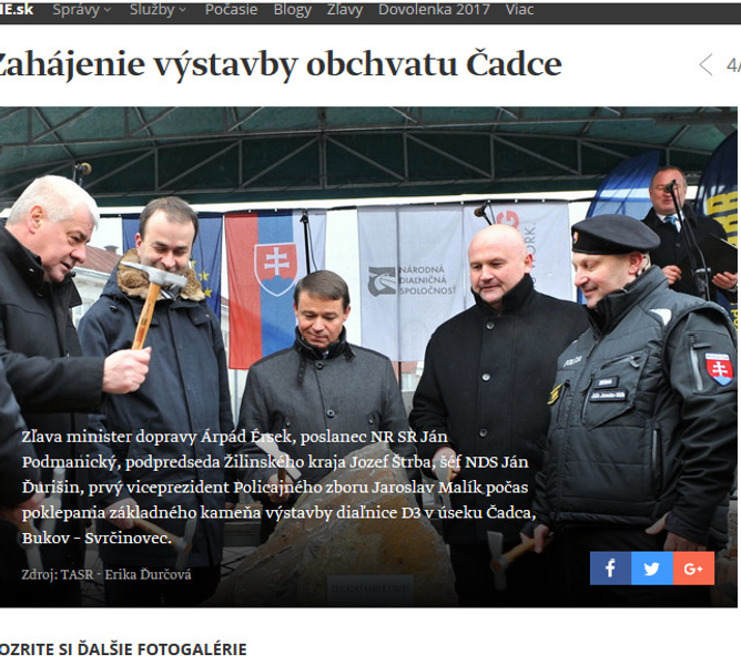Výstavbu úseku diaľnice D3 Čadca, Bukov – Svrčinovec spustili v januári poklopaním základného kameňa v centre Čadce. Úsek meria 5,6 kilometra a počas štyroch rokov ho má postaviť konzorcium stavebných firiem Strabag, PORR a Hochtief CZ. Tento slávnostný okamih si nenechal ujsť ani 1. policajný viceprezidnet Jaroslav Málik.